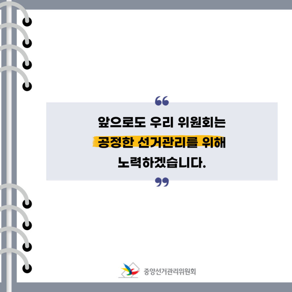 앞으로도 공정한 선거관리를 위해 노력하겠습니다.