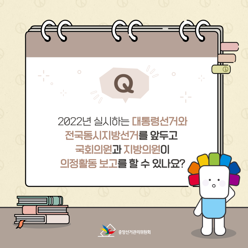 Q. 2022년 실시하는 대통령선거와 전국동시지방선거를 앞두고 국회의원과 지방의원이 의정활동 보고를 할 수 있나요?