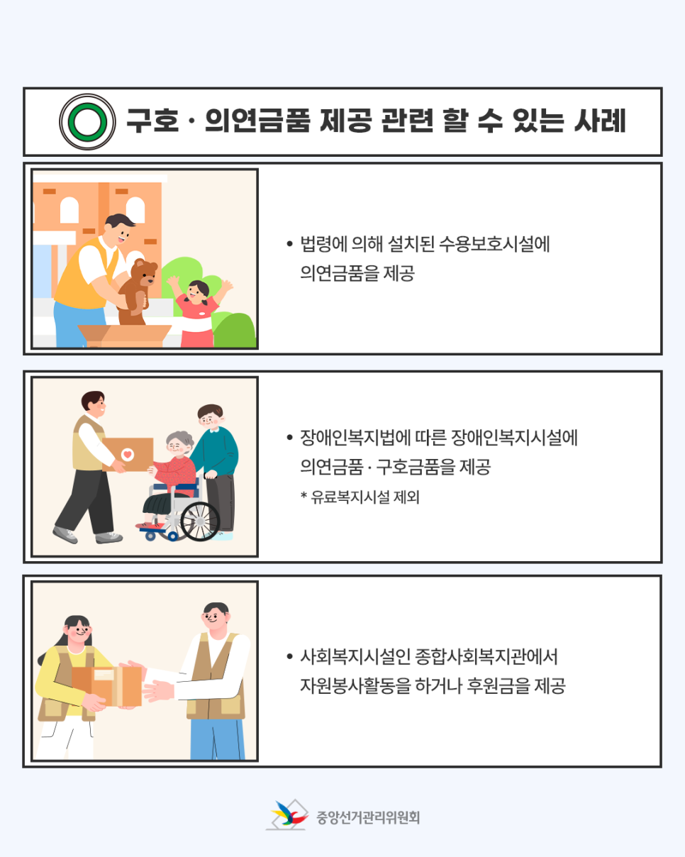 정치인이 구호금품 · 선물 등을 제공할 수 있을까요?