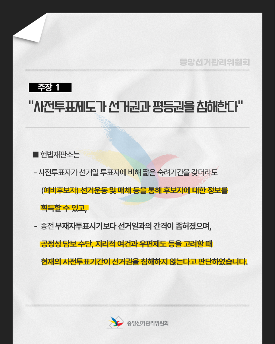 "사전투표제도가 선거권과 평등권을 침해한다"