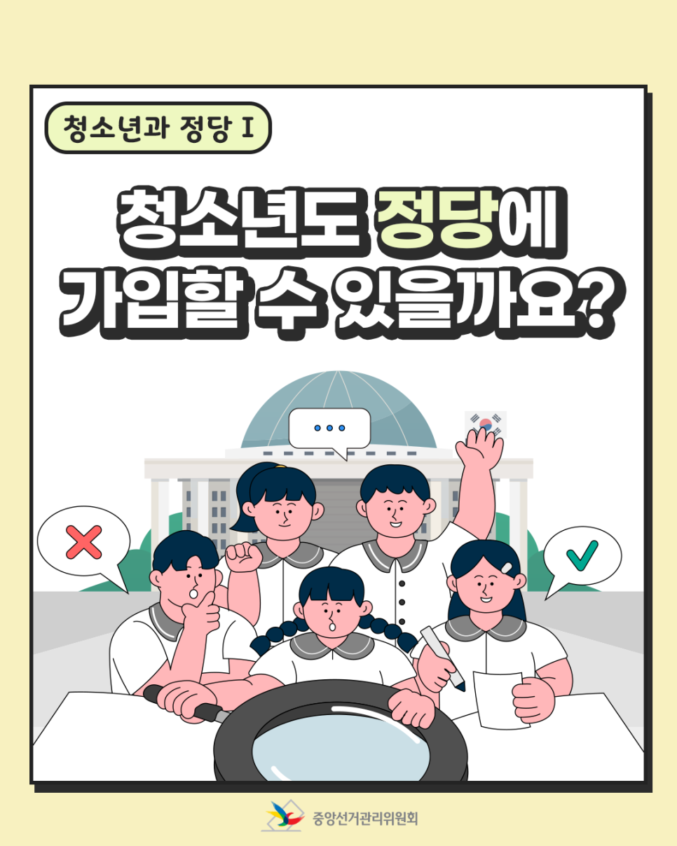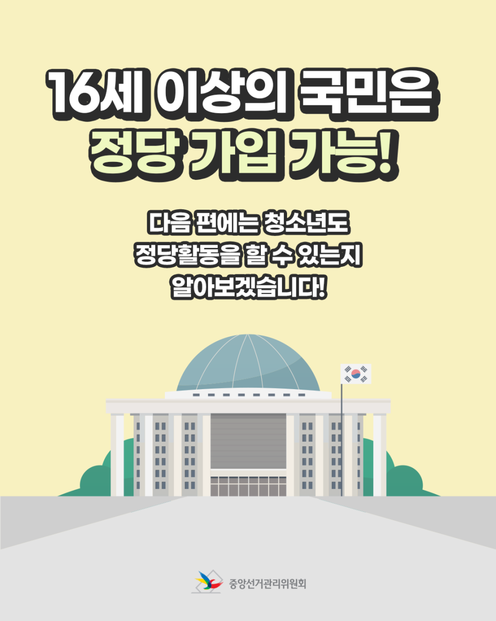 다음 편에는 청소년도 정당활동을 할 수 있는지 알아보겠습니다!
