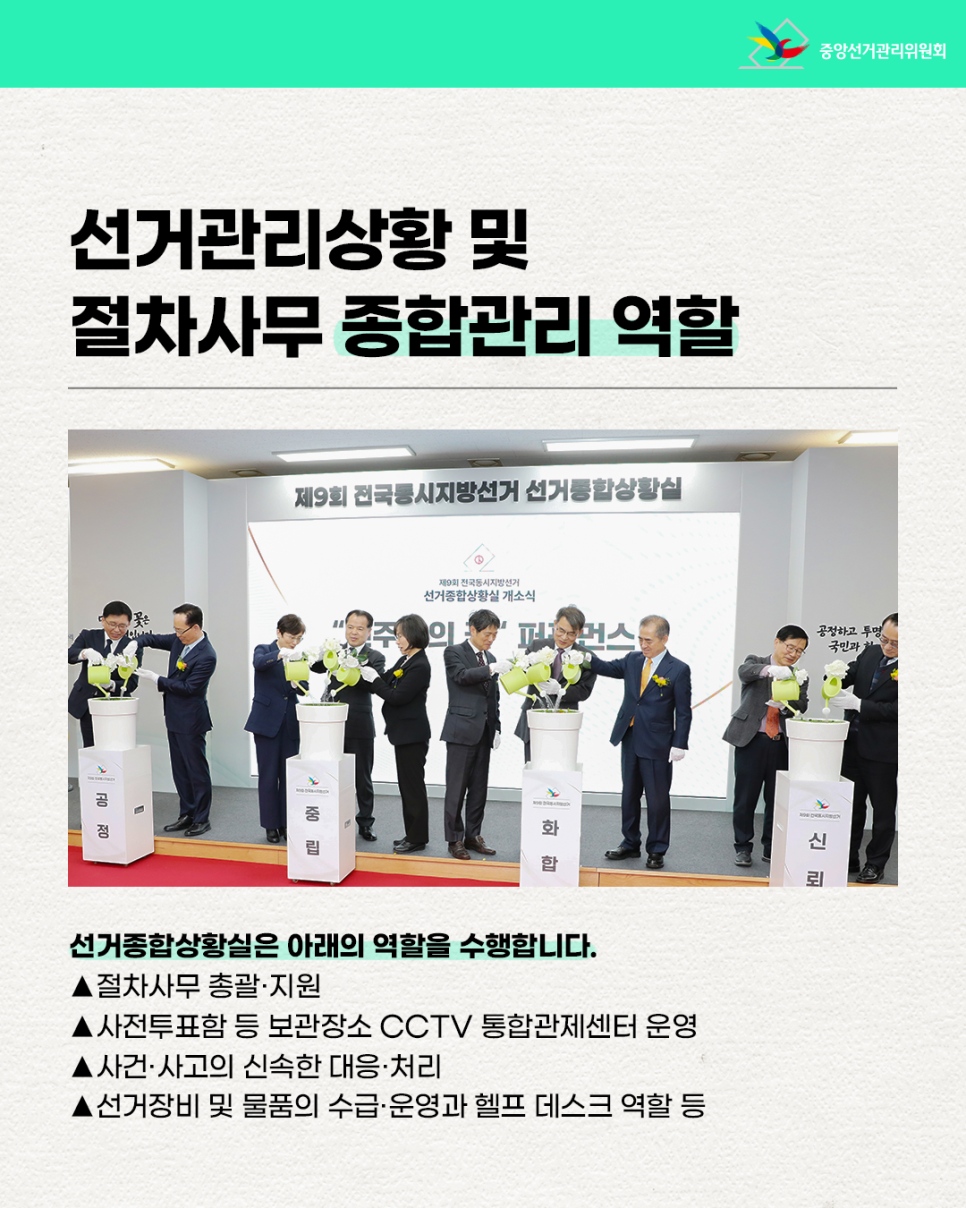 선거관리상황 및 절차사무를 종합관리하고