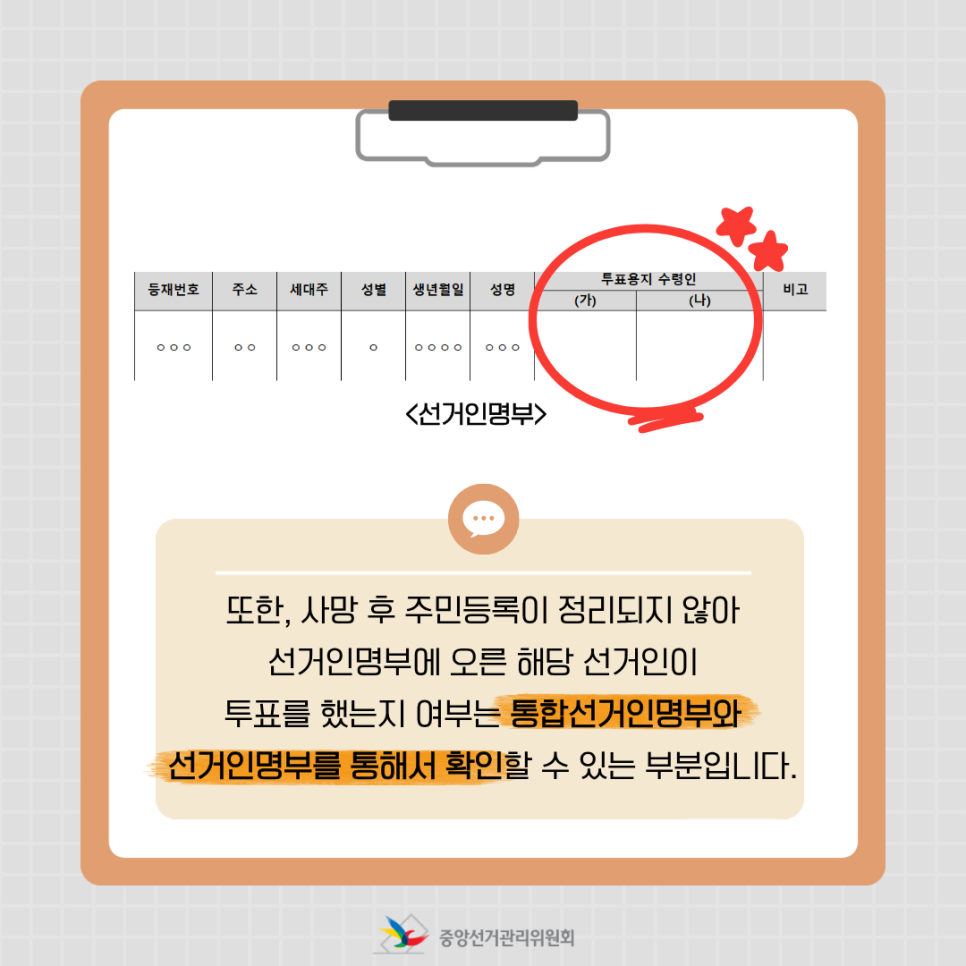 통합선거인명부와 선거인명부를 통해서 확인할 수 있는 부분입니다.