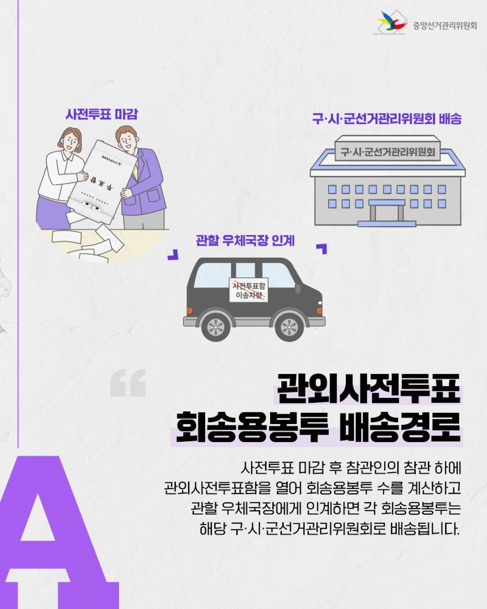 “관외사전투표 회송용봉투 배송경로”