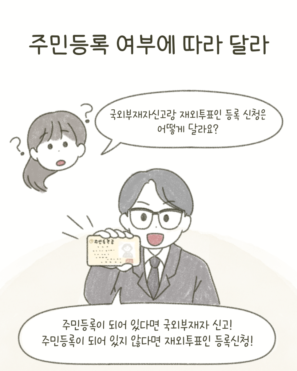국외부재자신고랑 재외투표인 등록 신청은 어떻게 달라요?