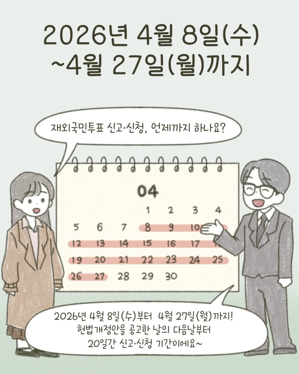 헌법개정안을 공고한 날의 다음날부터 20일간 신고·신청 기간이에요~